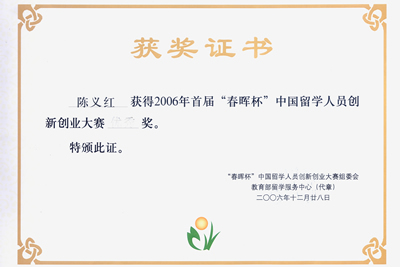教育部首屆“春暉杯”中國(guó)留學(xué)人員創(chuàng)新創(chuàng)業(yè)大賽頒獎(jiǎng)活動(dòng)于12月28日在廣州舉行,我司董事長(zhǎng)陳義紅博士榮獲優(yōu)秀獎(jiǎng)。
