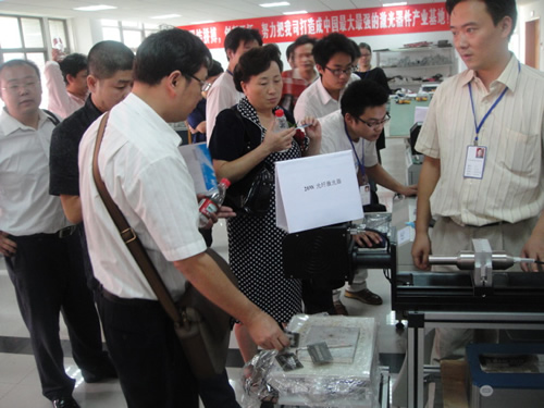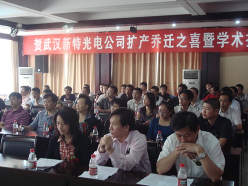 我公司董事長陳義紅博士致答謝詞,并介紹了新特光電發(fā)展沿革及公司生產(chǎn)規(guī)模和主要產(chǎn)品性能等。武漢中國光谷激光行業(yè)協(xié)會會長、湖北省暨武漢激光學會理事長、華中科技大學光電學院副院長、激光加工國家工程研究中心主任朱曉教授作了武漢光谷激光行業(yè)發(fā)展的報告。會后,與會人員在董事長陳義紅博士、總經(jīng)理陳義兵的陪同下參觀了我司生產(chǎn)基地、最新產(chǎn)品及技術(shù)成果。