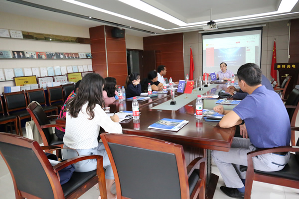 2018年9月10日下午,來自埃薩俄比亞、泰國、伊朗、斯里蘭卡、烏干達(dá)、博茨瓦納、南非和多米尼加8個(gè)國家的政府官員和專家到訪新特光電。