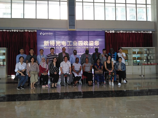 9月20日上午,來(lái)自一帶一路國(guó)家南非、泰國(guó)、多米尼加、也門(mén)、博茨瓦納、烏干達(dá)、安哥拉等聯(lián)合國(guó)科技促進(jìn)發(fā)展委員會(huì)成員中的14個(gè)發(fā)展中國(guó)家的政府官員與專(zhuān)家參觀新特光電工業(yè)園暨僑邑科技孵化器,陳義紅博士陪同參觀,并座談。