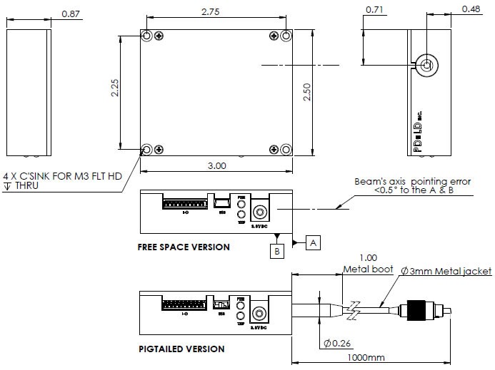 | 最小彎曲直徑 | ≥300mm | 光束發(fā)散半角 | ≤0.22mrad |
