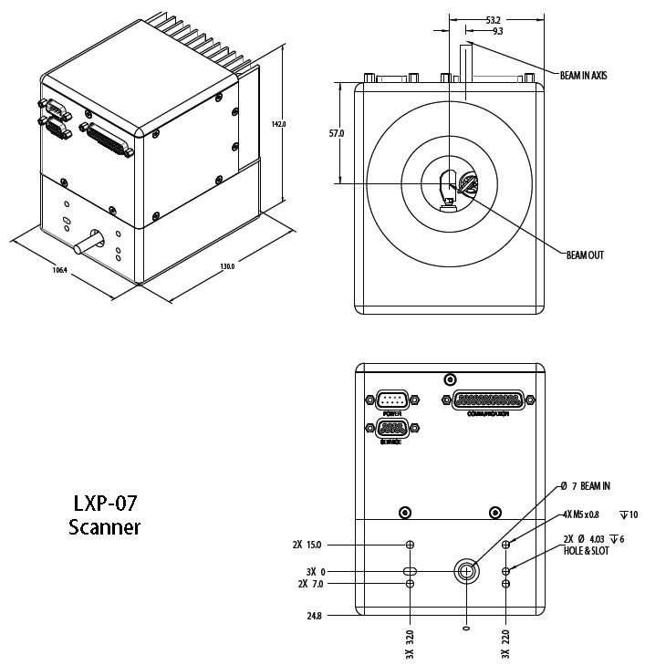 | 產(chǎn)品型號 | 通光口徑mm | 輸入電壓±V | 控制 | 外形尺寸mm | 重量 kg | 振鏡 |