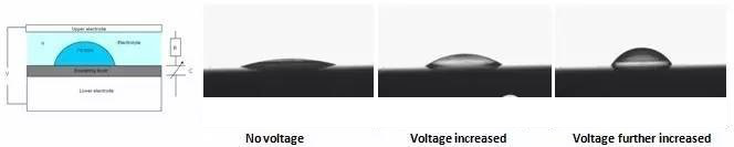 我們知道,傳統(tǒng)的變焦鏡頭是通過調(diào)整兩個固定焦距的鏡頭之間的距離來實現(xiàn)變焦的。而傳導(dǎo)型液體鏡頭使用兩種不能融合的液體,每一種液體擁有不同的折射率,生成一種與傳統(tǒng)的高質(zhì)量的光學(xué)鏡頭一樣的可變聚焦鏡頭,而鏡頭大小卻可以減少到10mm,甚至更小。兩種液體,其中一種是導(dǎo)電的水性溶液,另一種是不導(dǎo)電的油。這兩種液體被裝在小型管狀容器中,在容器內(nèi)形成相當(dāng)與玻璃鏡頭的月牙型的曲面,曲面的曲率就是液體鏡頭的焦距。油的抗水表面的濕潤效果可以使用電壓來改變(故名電潤濕),令表面變得更親水(濕潤)或更抗水。由于原先抗水(或親水)的表面現(xiàn)在變得更吸水(或抗水),油層不得不改變其形式,因此,通過調(diào)整在容器兩端的直流電電壓,就可以改變兩種不同的液體交接處月牙形表面的曲率,也就是鏡頭的焦距。