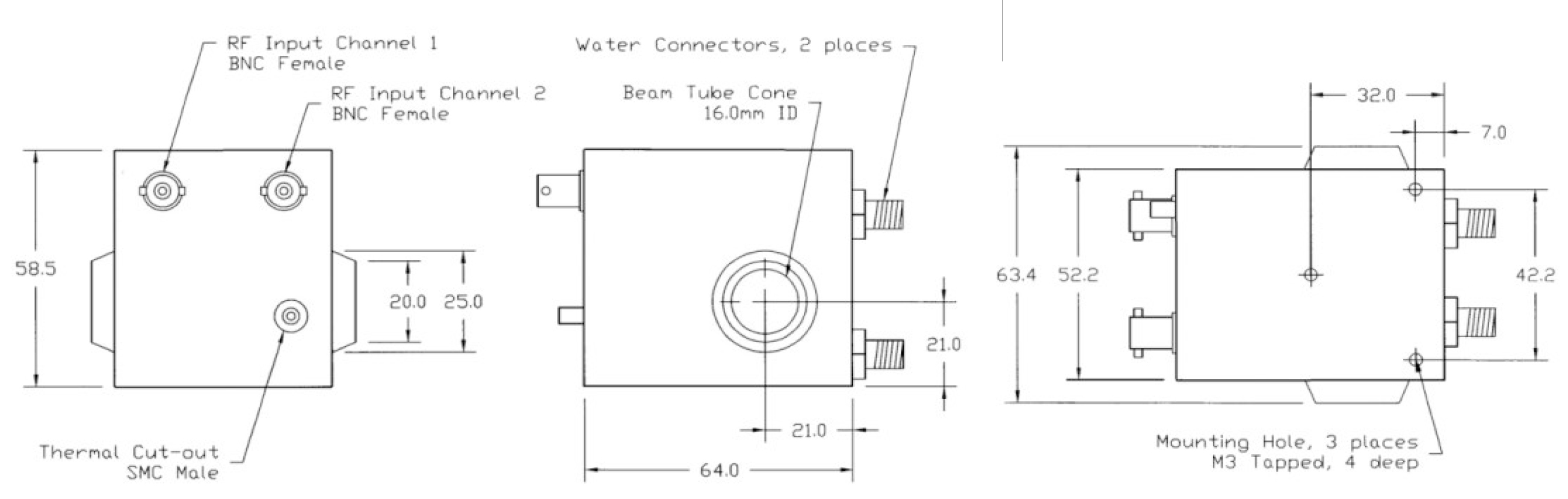• 水冷通道材料:鋁(強(qiáng)烈推薦去離子水)