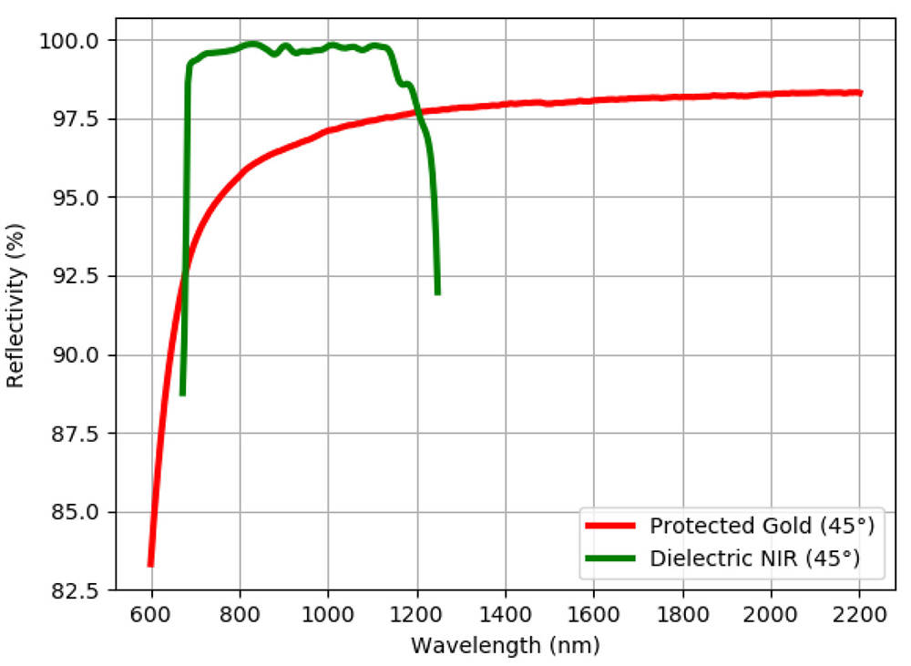 • Protected gold >95%, at 800-2000 nm