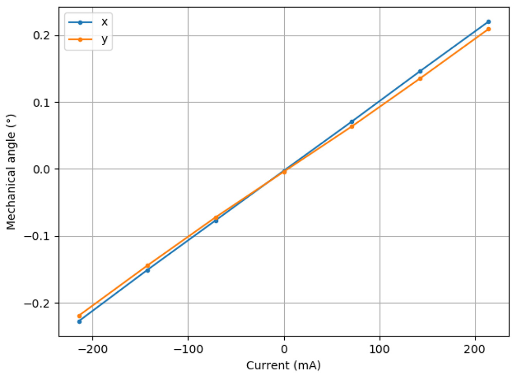 機(jī)械傾斜角度 X軸:±25°; Y 軸±25° X軸:±25°(慢軸); Y 軸±12.5°(快軸)