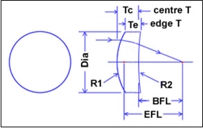 | 型號 | 材料 | 有效焦距mm/inch | 后焦距mm | 直徑Mm/inch | 邊緣厚度mm |