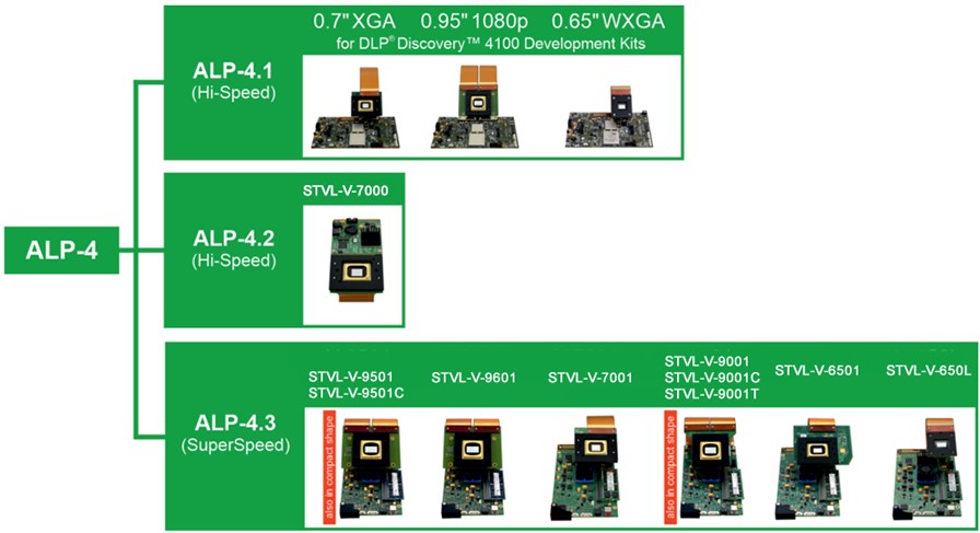 | 芯片組 | DLP7000 DLPC410 | DLP7000 DLPC410 | DLP9500 DLPC410 | DLP6500 DLPC910 | DLP9000X DLPC910 | DLP650LNIR DLPC410 |